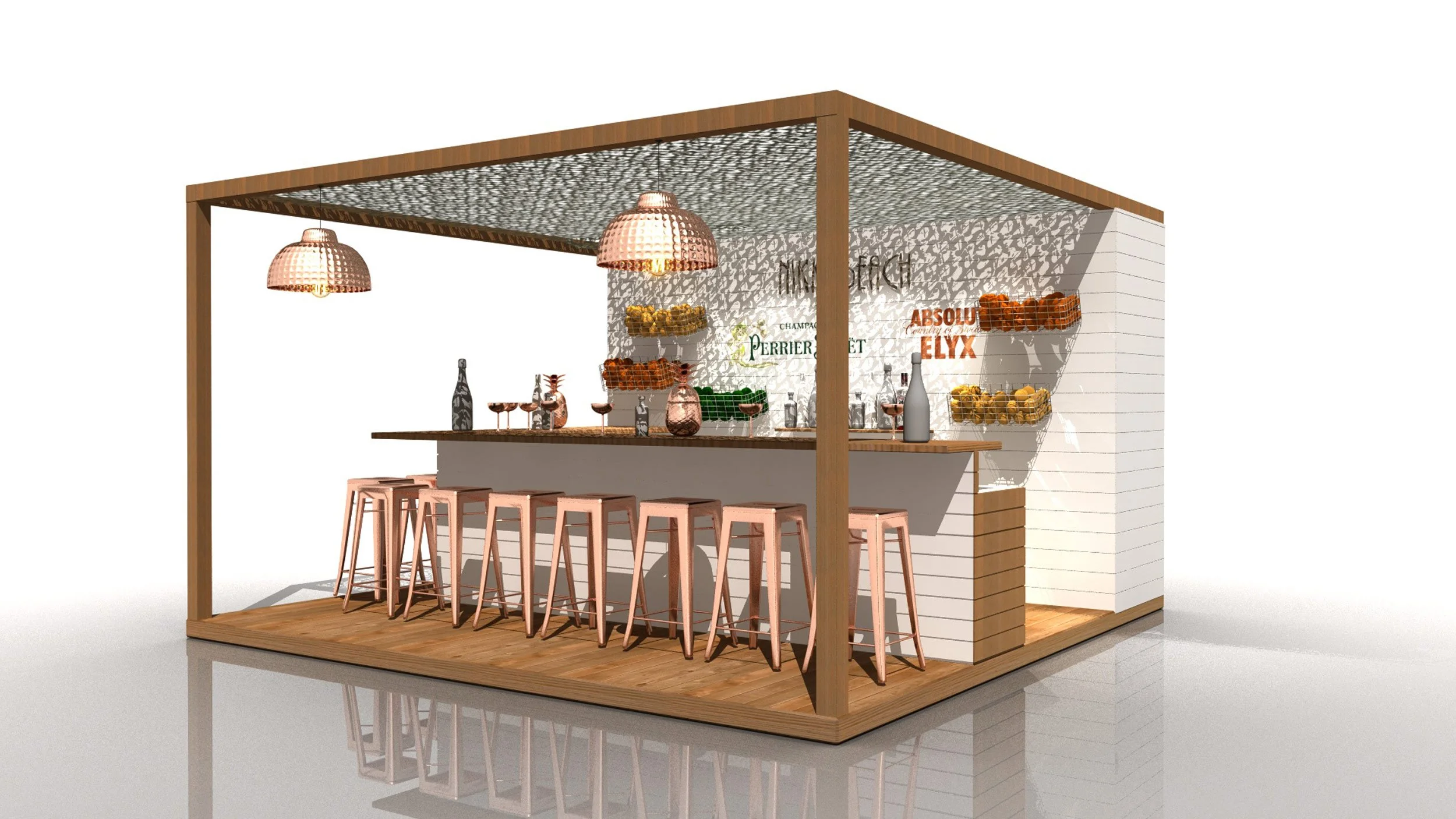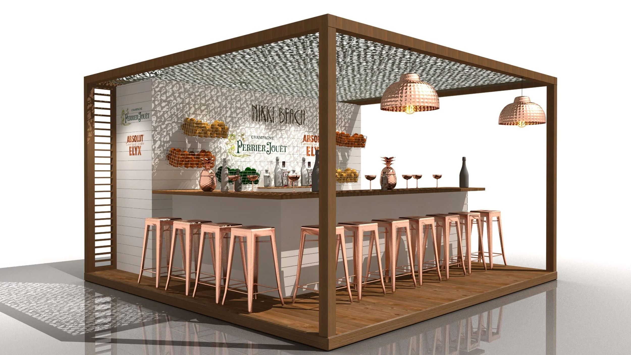 PERRIER-JOUET et ELYX souhaitent réaliser un Bar mixant leurs deux univers, au Nikki Beach de Saint-Barthélémy.